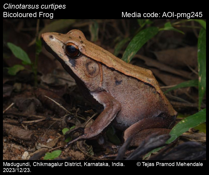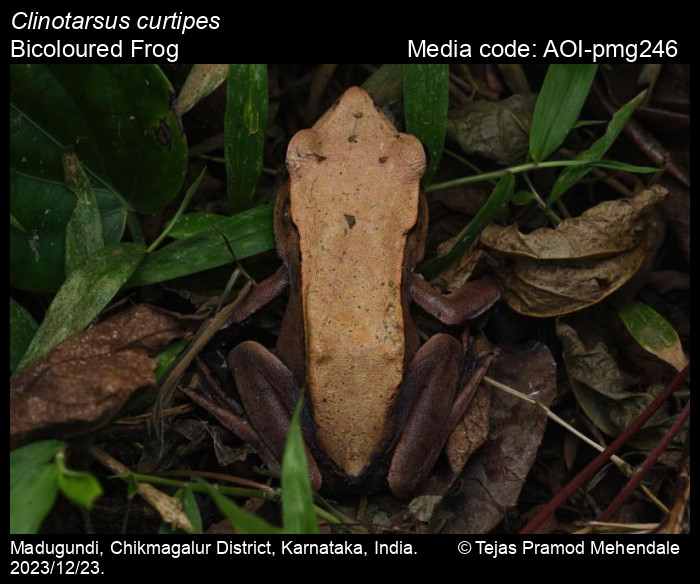 Anonymous 2025. Clinotarsus curtipes (Jerdon, 1853) – Bicoloured Frog. In Gosavi, N., A. Bayani, and K. Kunte (Chief Editors). Butterflies of India, v. 1.05. Published by the Indian Foundation for Butterflies. URL: https://www.indianamphibians.org/clinotarsus-curtipes, accessed 2025/10/12.