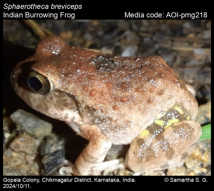 Anonymous 2025. Sphaerotheca breviceps (Schneider, 1799) – Indian Burrowing Frog. In Gosavi, N., A. Bayani, and K. Kunte (Chief Editors). Butterflies of India, v. 1.05. Published by the Indian Foundation for Butterflies. URL: https://www.indianamphibians.org/sphaerotheca-breviceps, accessed 2025/10/12.